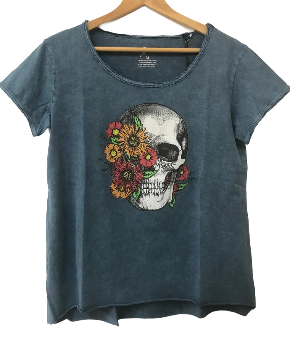 Preciosa Polera de algodón estampado “Catrina floreada”!